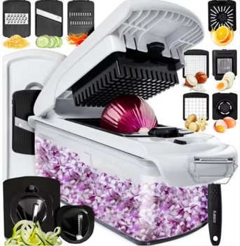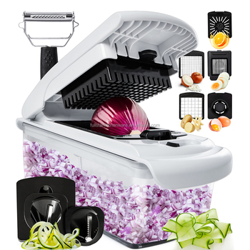 9 in1オニオンチョッパー野菜ダイサーレモンジューサーエッグスライサーエッグセパレーターステンレススチールピーラースパイラルサー1.2Lコンテナ